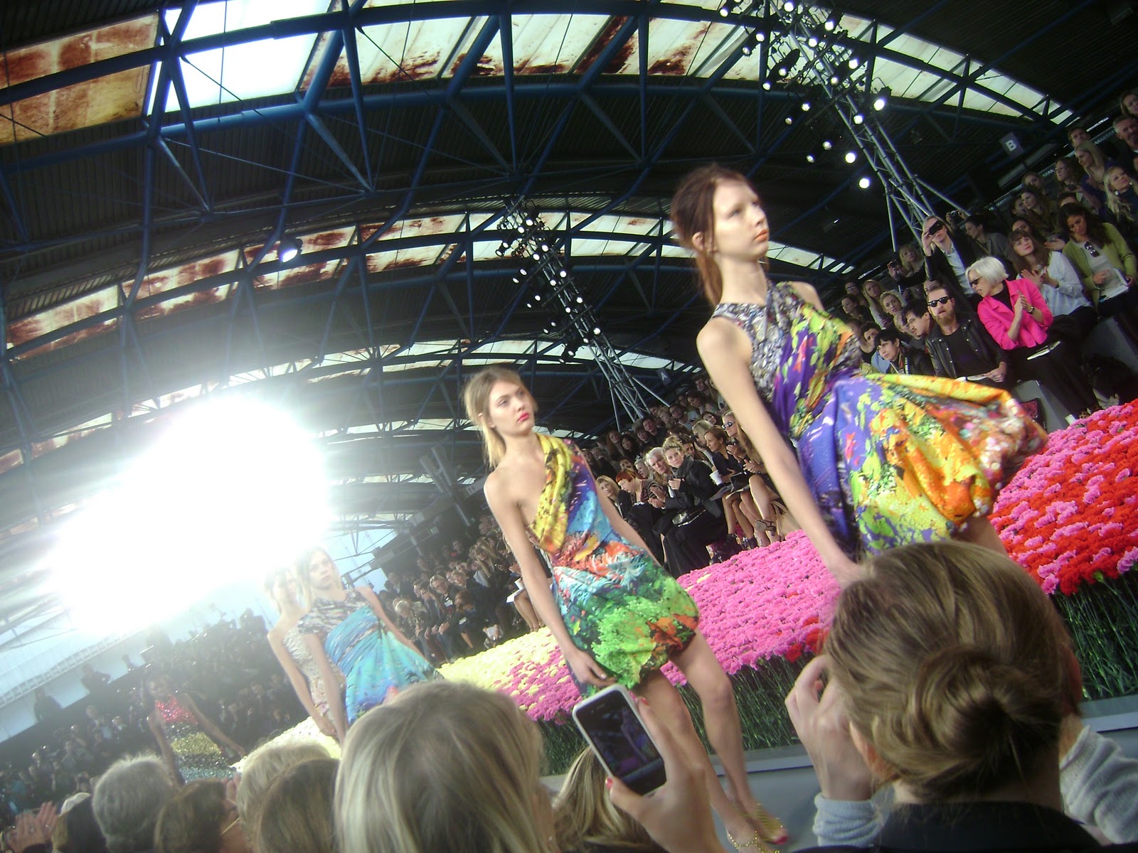 Nowa kolekcja i moj pierwszy pokaz Mary na zywo. Jeszcze wieksze emocje i lepszy efekt. Cudowne miejsce na starym terminalu Eurostar (stacja Waterloo w Londynie), srodek wybiegu wypelniony kwiatami, wokol ktorego chodzily modelki. Tuż przed pokaz zostaliśmy zaproszeni na przekaski i cos do picia, "Śniadanie u Mary Katranzou".